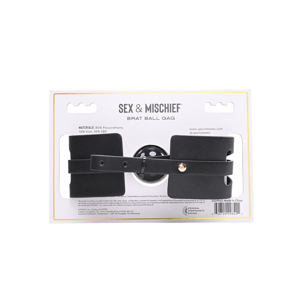 Esplora nuove dimensioni sensoriali con la Ball Gag della linea “Brat” di Sex & Mischief, un raffinato accessorio BDSM realizzato in ecopelle di alta qualità. La morbida sfera non respirabile, avvolta nella sua elegante copertura nera con dettagli in metallo color oro rosa, offre un’esperienza di sottomissione avvincente.
