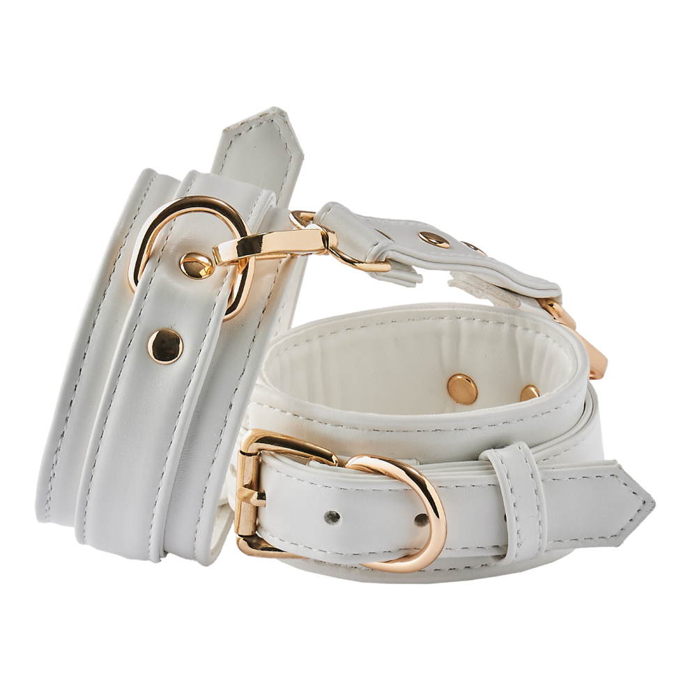 Polsini restrittivi per caviglie, del brand “Blaze Elite”, realizzati in pelle artificiale di alta qualità. Disponibili in due suggestivi colori, bianco o rosso (rosso in arrivo), questi polsini sono un accessorio bondage dal design raffinato ed elegante.