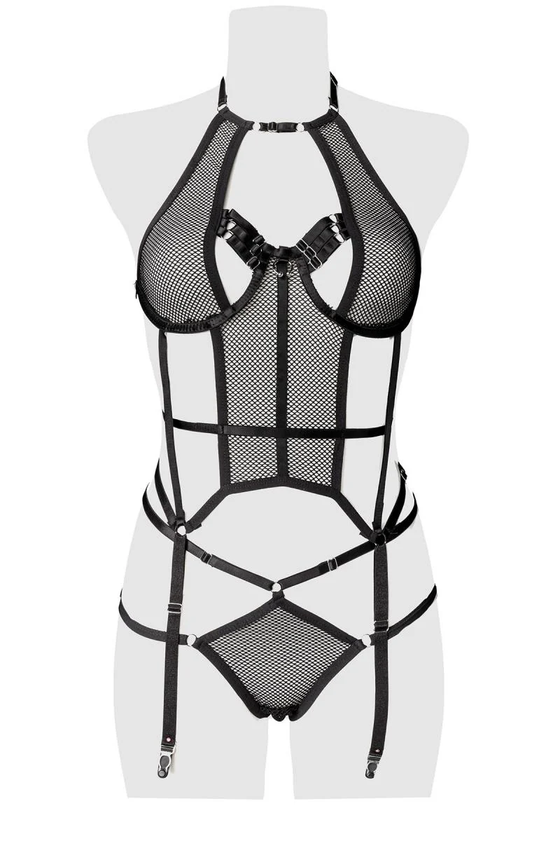 Set erotico con microrete e reggicalze | Grey Velvet