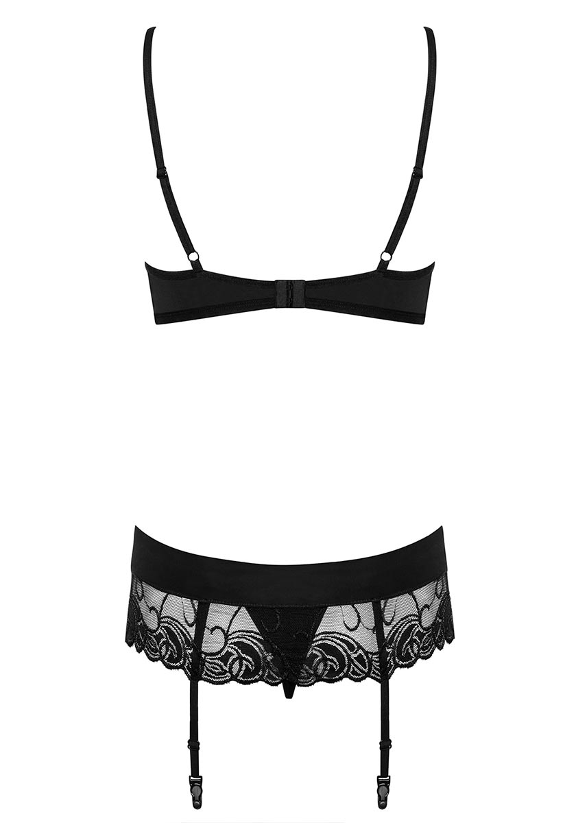 Wonderia set 3 pezzi – completino intimo nero | Obsessive